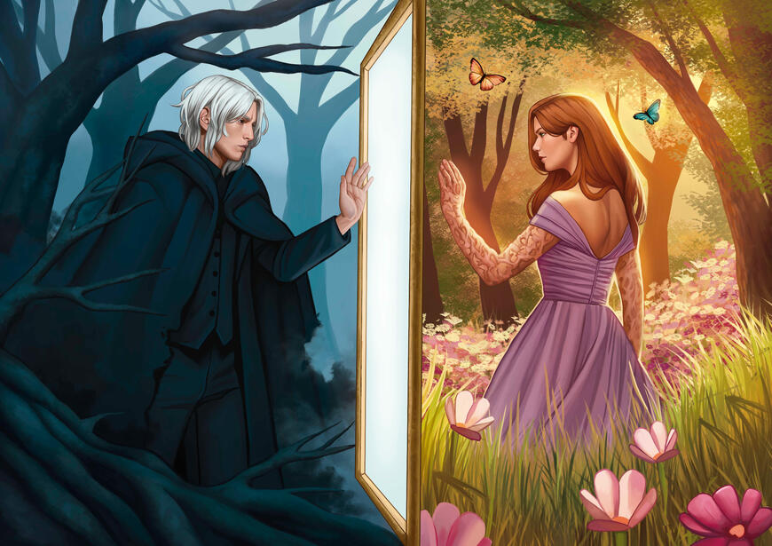 Illustration for a promotional card for the book "O Abismo de Celina" (Celina's Abyss), by author Ariani Castelo, and published by Editora Rocco.