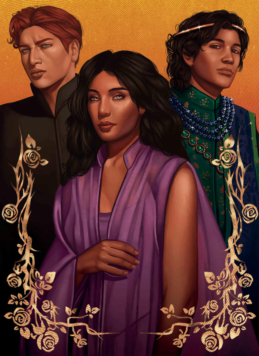 Illustration for the cover of the book "Safira Dourada" (Golden Sapphire), by author Gabrielle Mariano, published by Editora Violeta.